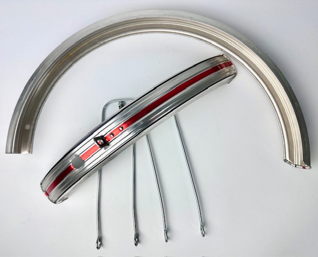 Garde-boue vintage avec renforts en acier pour roues 16 pouces, rayés argentés.
