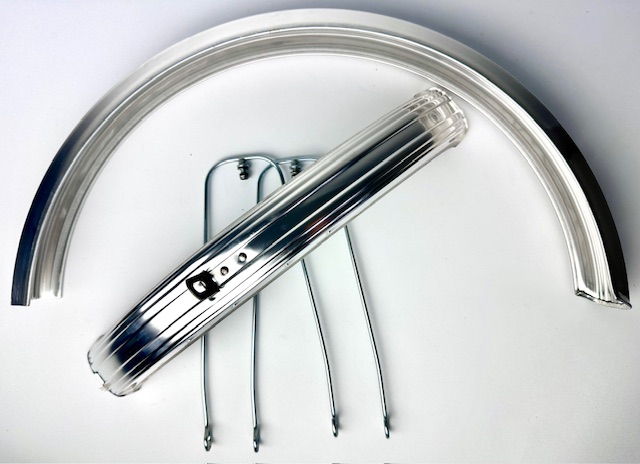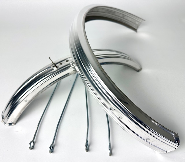 Garde-boue vintage avec renforts en acier pour roues 16 pouces, argentés.